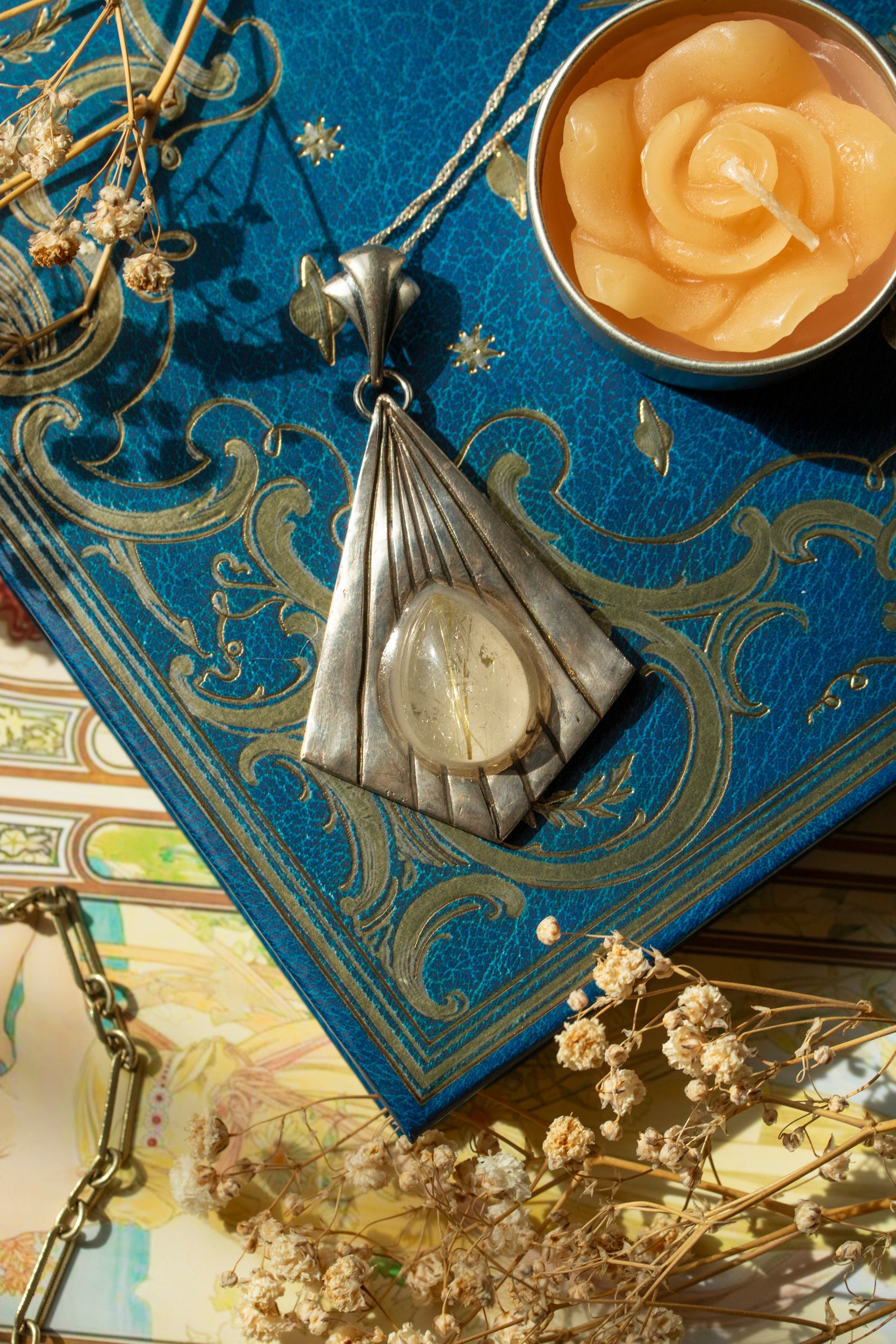 Rutilated gold quartz & Fine Silver Glowing Necklace