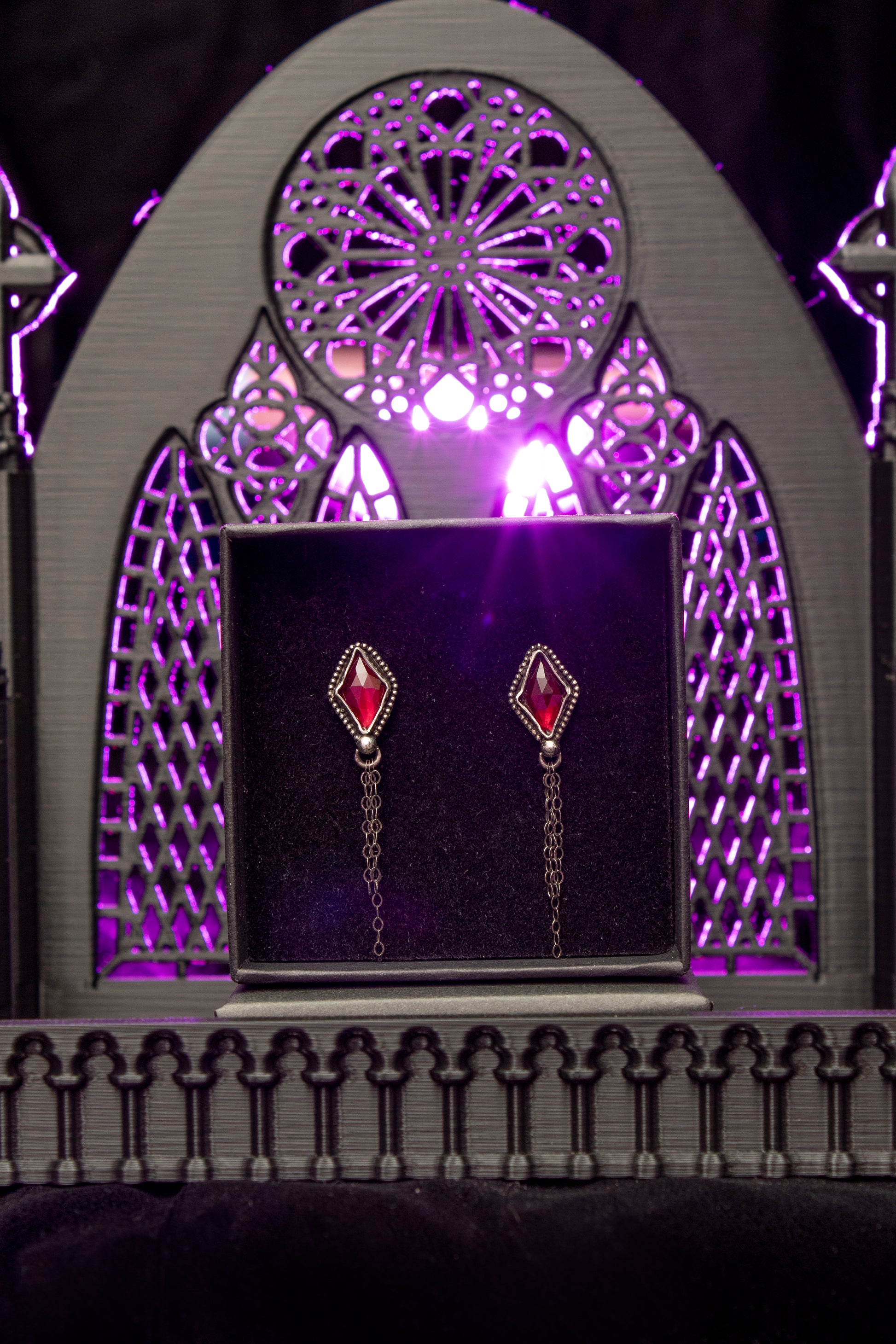 Rhodolite garnets set in fine silver bezels with sterling silver chains & details