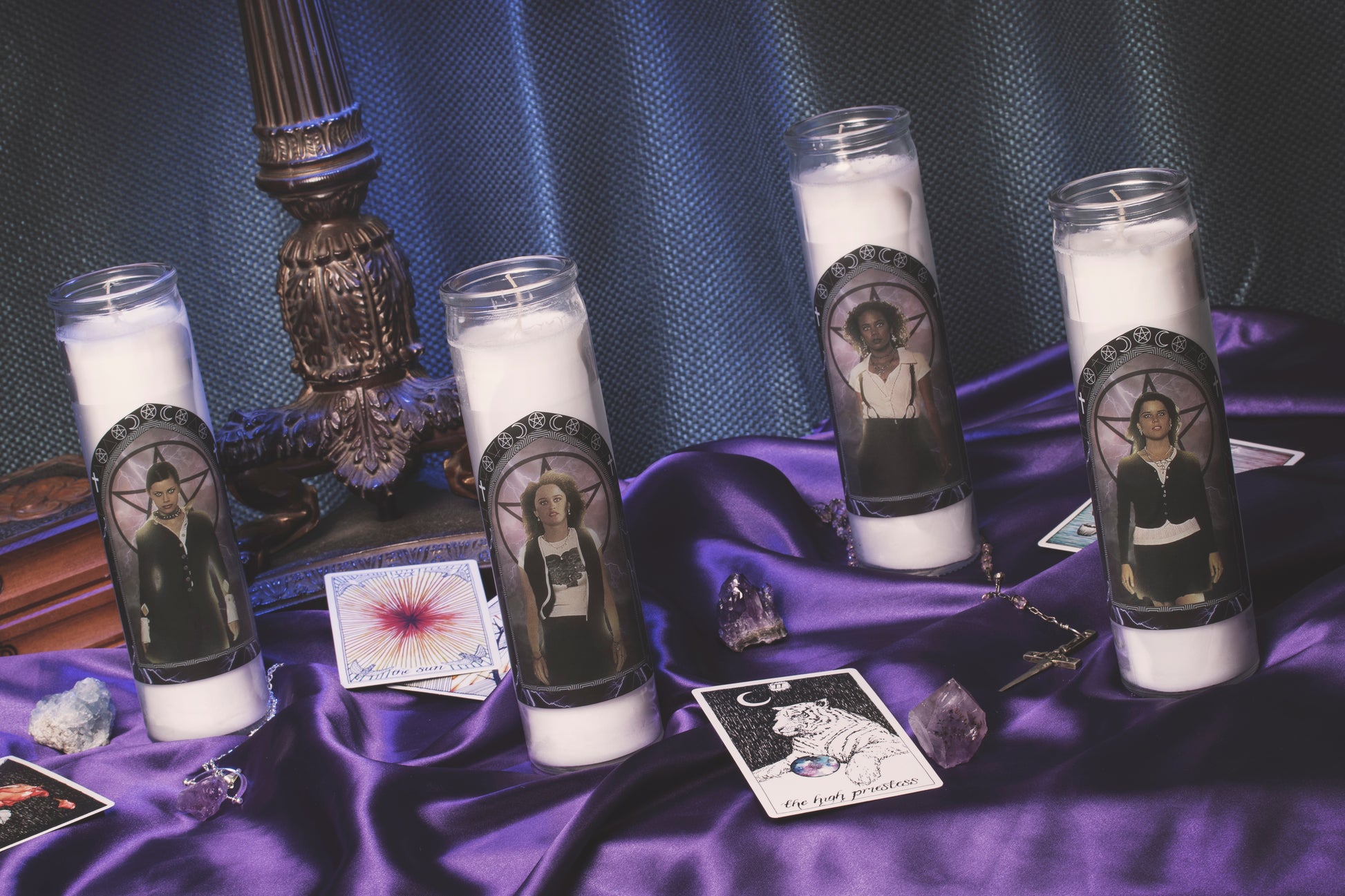 Each candle features one of the girls from your favorite coven: Nancy, Bonnie, Rochelle and Sarah! Collect all 4!